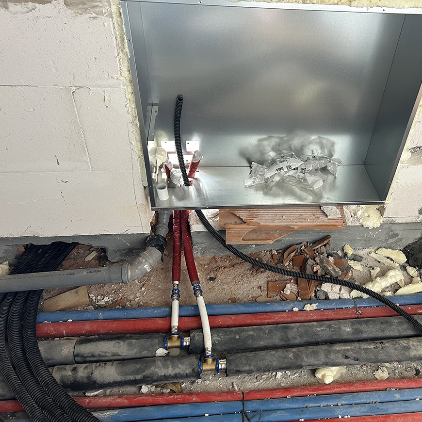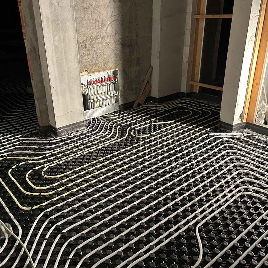 Un altro fiore all'occhiello di TECH & BUILD è il sistema di raffreddamento a pavimento, abbinato a sofisticati impianti di deumidificazione. Questa soluzione, ideale per gli ambienti residenziali e commerciali, offre un comfort unico, eliminando la condensa a pavimento e garantendo una temperatura interna piacevole e costante, senza le correnti d'aria tipiche dei sistemi di climatizzazione tradizionali.